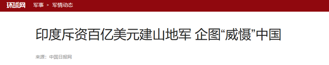 环球网《印度斥资百亿美元建山地军 企图“威慑”中国》