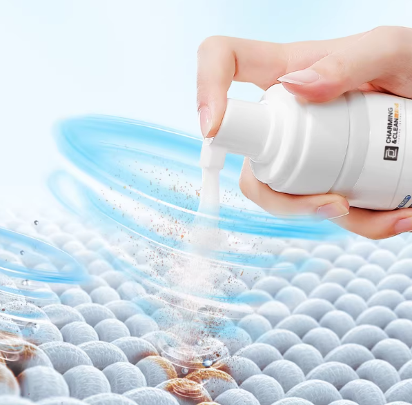更值得一提的是,产品采用绵密泡沫靶向去污设计:喷头喷出的细腻泡沫能精准覆盖污渍,避免液体扩散污染面料;清洁后还添加柔顺因子,让衣物保持蓬松柔软,尤其适合真丝、羊毛等高档面料。