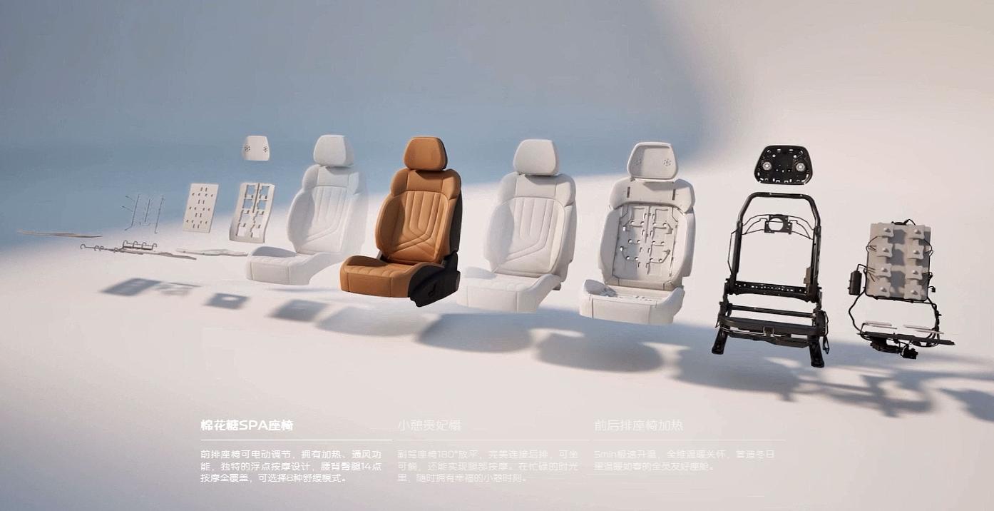 另外,新车还配备“棉花糖SPA座椅”,前排支持14点腰背臀腿按摩(8种模式)、3档通风/加热,后排座椅加热+528mm超长坐垫;16扬Flyme Sound无界之声音响含独立1000W功放,头枕音响支持“驾享/私享”模式,导航与音乐双频独立播放。此外,前排双层隔音玻璃+整车62项声学包处理,120km/h车内噪音仅69dB,静谧性同级领先。