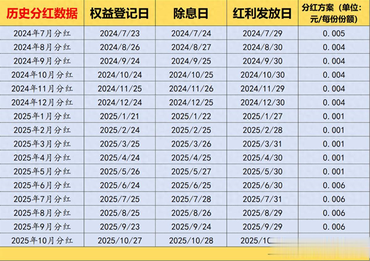 当前市场上跟踪港股通高股息指数的基金有12只,其中规模最大、流动性最好的是汇添富基金旗下的港股红利ETF基金(513820),当前规模达到了37.11亿元(2025/11/06),是名副其实的港股通高股息指数一哥,值得一提的是,港股红利ETF基金也是当前市场上连续分红月度最长的港红利类ETF,其已经连续16个月在月末最后一个交易日实施月度分红了: