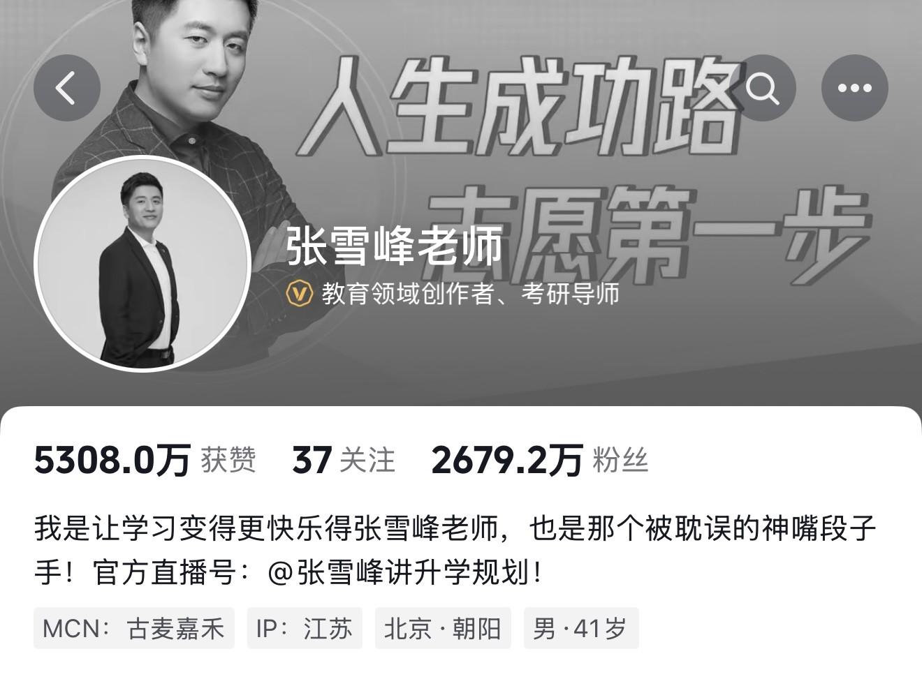虽说张雪峰有远超常人的财富,但41岁英年早逝,着实令人惋惜。
