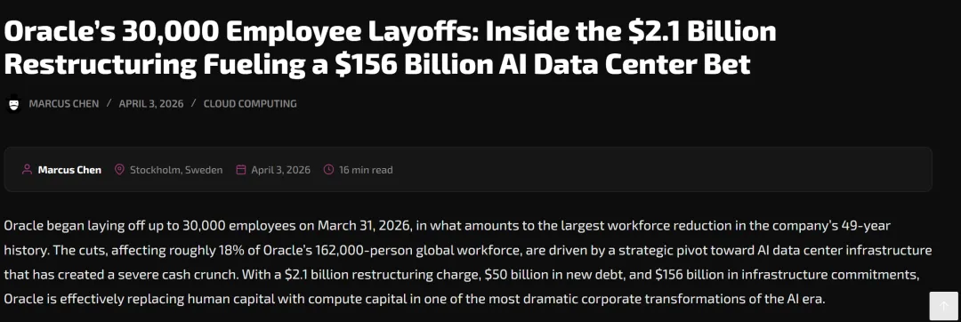 甲骨文的裁员事件并非孤例,它反映了科技行业在AI转型过程中的结构调整。