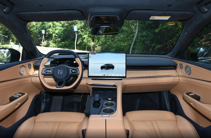 坐进车内,新车的环抱座舱设计趋合当下年轻用户对新能源车型的购车需求,中央区域是一块支持30°角度旋转的3.5K高清16英寸向日葵中控屏,搭配39.3英寸AR-HUD抬头显示、13.02英寸液晶仪表,所营造出的座舱驾驶环境兼顾高级感和科技氛围,其中AR-HUD抬头显示不仅支持导航动态信息的互动展示,在光线较强的环境下也有不错的显示能力,一定程度上可以取代日常液晶仪表来获取行车数据信息。此外,中控屏的底层操作逻辑简洁易上手,画面无明显卡顿和延迟,只是第三方应用软件还不够全面,有待进一步丰富。