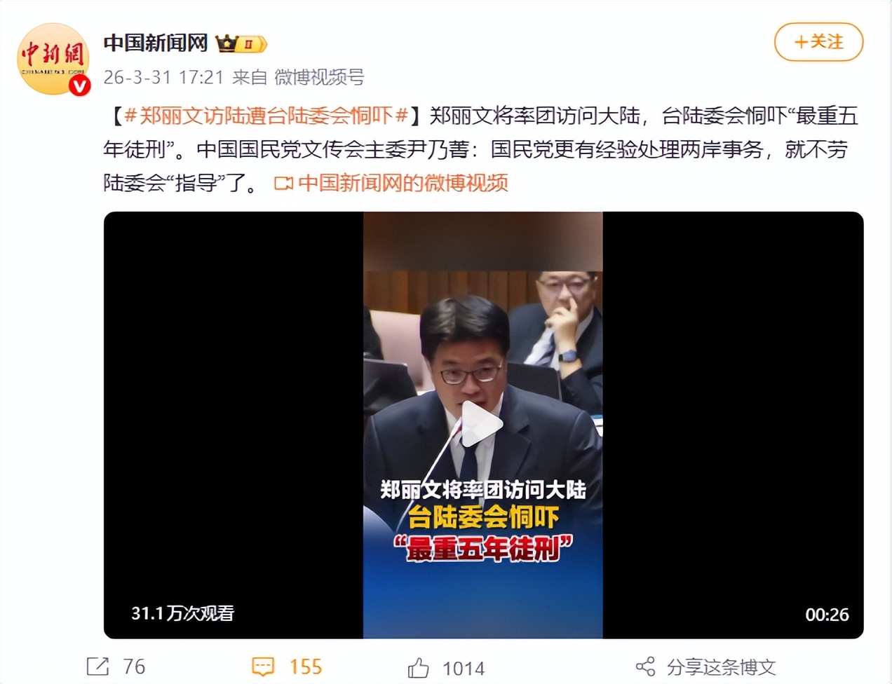 最大看点却不是郑丽文本人,而是民进党这边忙着上演双簧:一边低声下气希望她帮传个话让大陆别误会军购,一边陆委会又把5年牢狱的威胁抬上台面。这操作,是真怕失控吗,还是自乱阵脚?两岸局势风高浪急,民进党这番表演到底还能撑多久?
