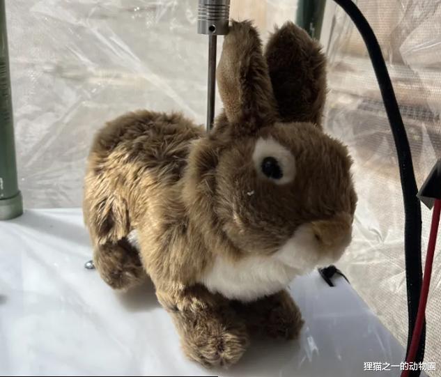 这只玩具兔子显然非常粗糙,以人类的视角来看真的搞笑!但它身上喷洒了兔子气味的液体;而且内部有发热器,能维持38.5-39.5℃的兔子正常体温;还会发出兔子的叫声。