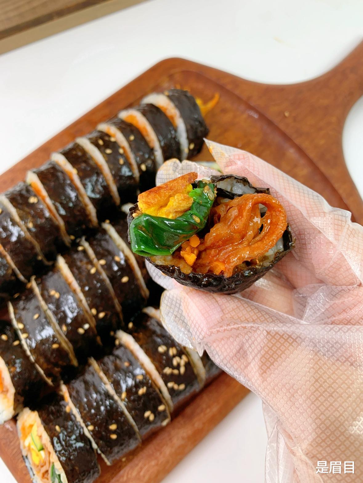 辣牛肉紫菜包饭是一款将香辣牛肉与清爽蔬菜包裹在米饭和紫菜中的韩式料理口感丰富制作也很有乐趣