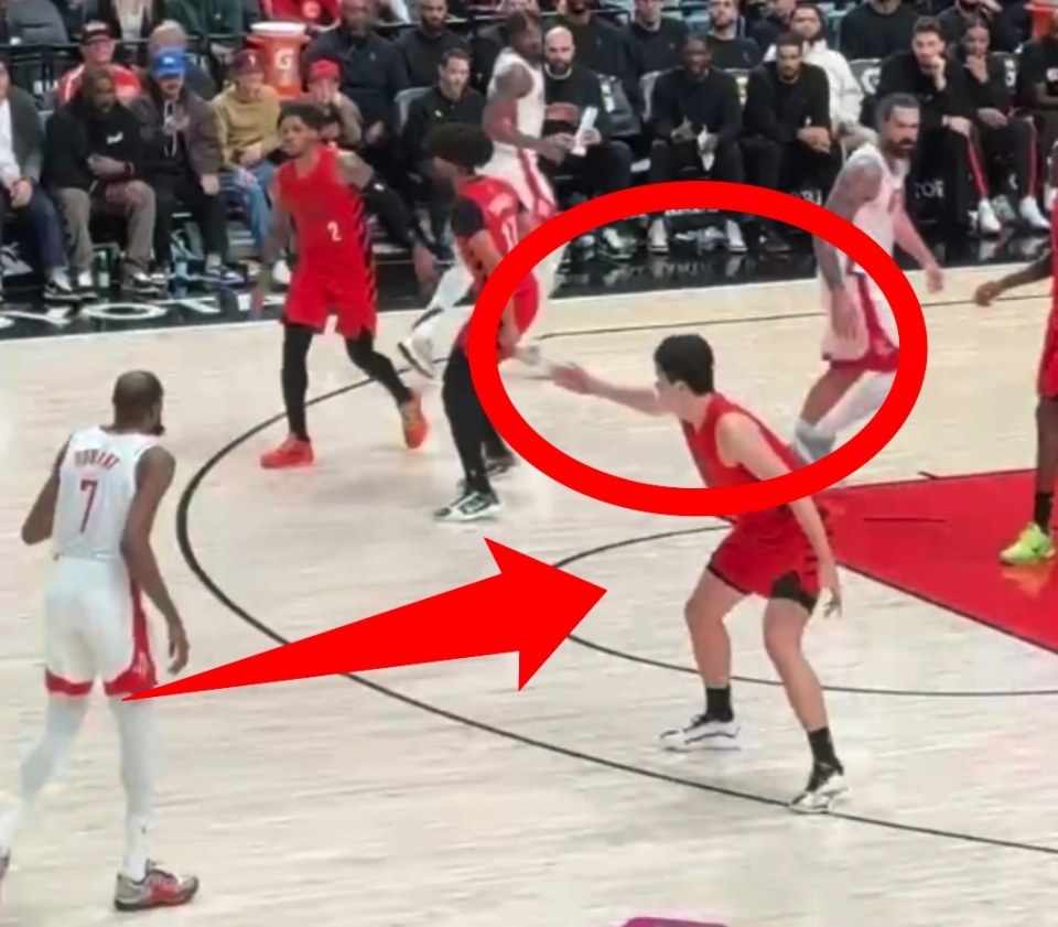 尽管身体对抗能力依然是杨瀚森的短板,但他正在用极高的篮球智商来弥补这一劣势。比赛中有一个耐人寻味的细节:当杜兰特在进攻端试图1v1点名单打杨瀚森时,这位年轻的中锋并没有盲目地试图一对一硬抗,而是第一时间冷静地示意弱侧的乐福过来协防。这一瞬间的判断展示了他对场上局势的清晰阅读——他深知自己的脚步移动难以跟上杜兰特,与其成为背景板,不如通过呼叫队友形成合力防守。这种超越年龄的成熟度,或许正是开拓者教练组愿意在关键时刻给他机会的重要原因,只能说猜到了开头杜兰特会单打脚步慢的杨瀚森,但没猜到小杨会寻求队友支援的结局。