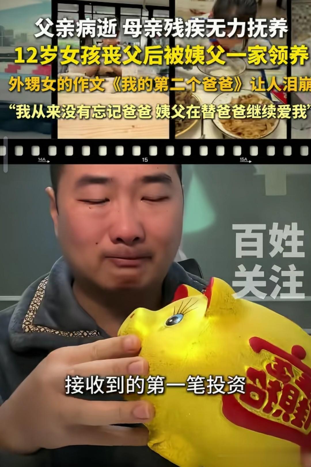 于是乐乐将自己积攒的零花钱全都送给了姨父,姨父看到后泪如雨下,他没有拒绝了乐乐的好意,他用乐乐的零花钱给她买了学习用品和零食给她吃了。