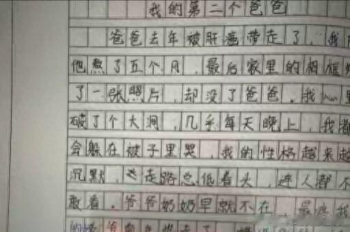乐乐在作文中表示:我的亲爸虽然永远的离开了我,但是我的姨父是我的第二个爸爸!