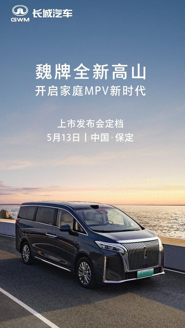 4月30日,长城汽车董事长魏建军发布视频,为全新高山上市进行了预告,魏牌将于5月13日在保定的长城技术中心举办全新高山上市发布会,届时将由长城汽车穆峰总进行更加详尽的产品解读,带大家感受全新高山开创的MPV家庭新时代。
