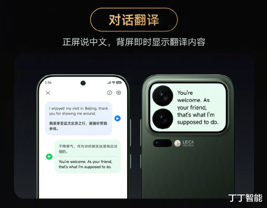 之前社区投票刷爆的对话翻译也是上线了!正屏说中文背屏实时蹦外文,跟外国友人交流时,举着手机背面就能 “无声沟通”。