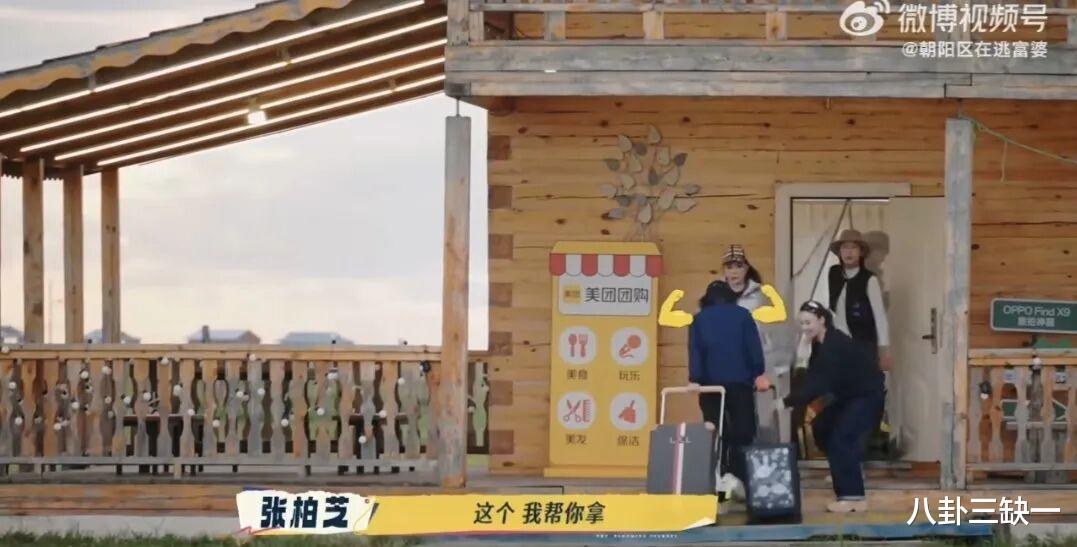 抵达后更是忙前忙后,前脚刚安顿好大家,后脚看见年轻弟弟独自对付一堆行李,二话不说就上前搭把手;分配房间时,又主动邀请年长的刘晓庆同住,一个贴心举动就化解了可能出现的选房尴尬。