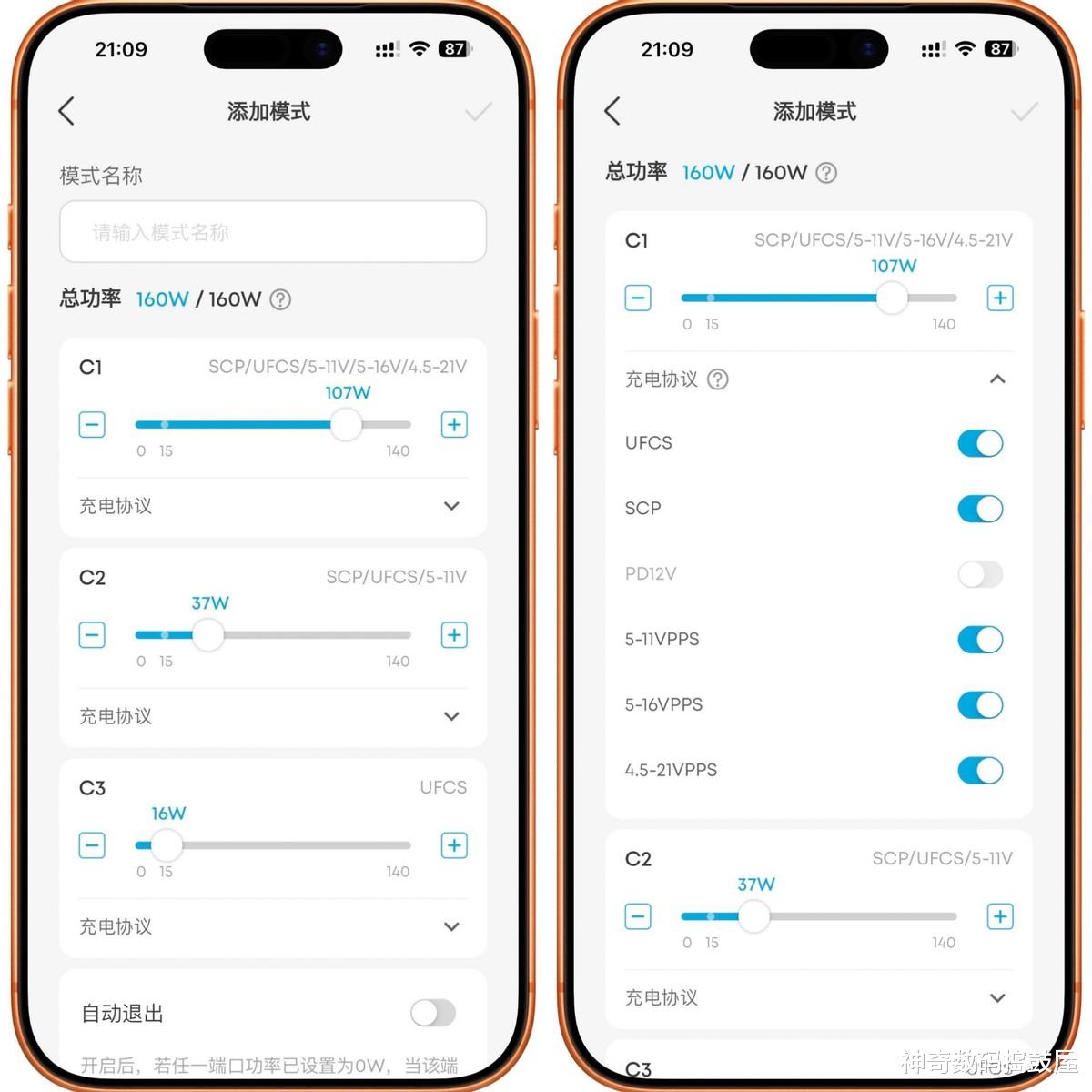 比如荣耀或IQOO用户,可在App里把C1口设为140W最大输出,保留公版PPS协议、关闭SCP和UFCS协议,大幅提升兼容性;实测把C1、C2口设为80并关闭对应协议,电流表显示完全匹配设定,精准度拉满!