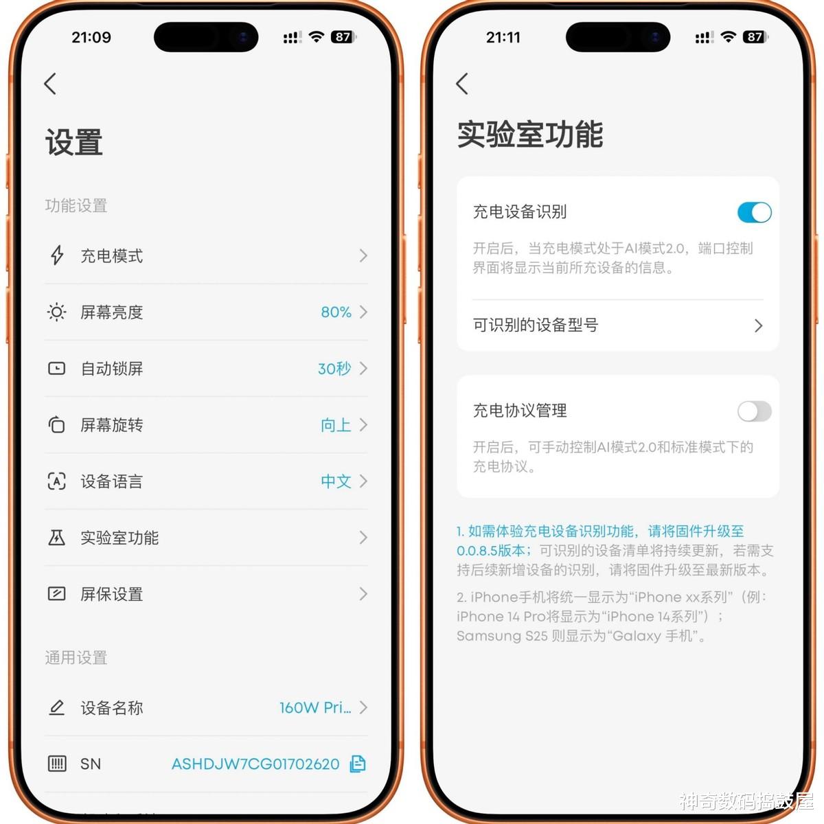 另外App还能精准识别部分正在充电的设备型号,而且App还支持自定义屏显亮屏时间,后续还能通过OTA在线升级,体验感直接拉满。