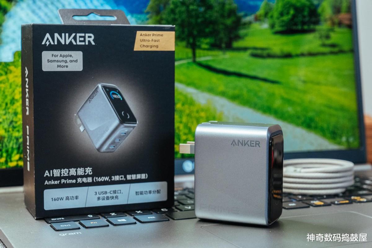 如果说二合一充电宝是“出行神器”,那Anker Prime 智显充Pro 160W充电器就是“效率狂魔”。我第一次拿到手的时候真的被它的体积惊到了,比苹果原装140W充电器小了整整一圈。
