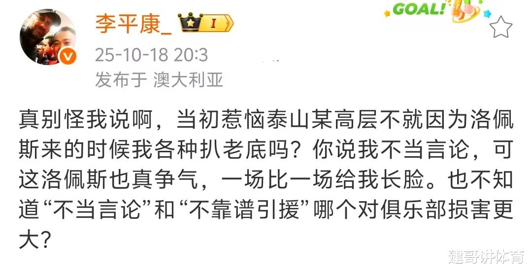 当这位夏窗换掉卡扎尔,获得泰山队认可的欧洲外援中卫,每场比赛都要暴雷后,他在今晚场上的表现,也给了名记李平康把柄,李平康更新个人社交,点评洛佩斯时还没忘怒怼泰山队某高层,李平康称还怪他说,嫌弃我在洛佩斯刚刚加盟泰山队时对洛佩斯各种扒老底,说我不当言论,洛佩斯也争气,给我长脸,就是不当言论和不靠谱引援,哪一个对俱乐部的损害更大?