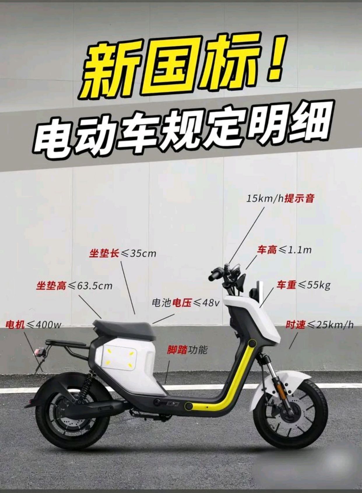 先简单介绍一下2019年4月15日,出台的新国标电动自行车的配置参数