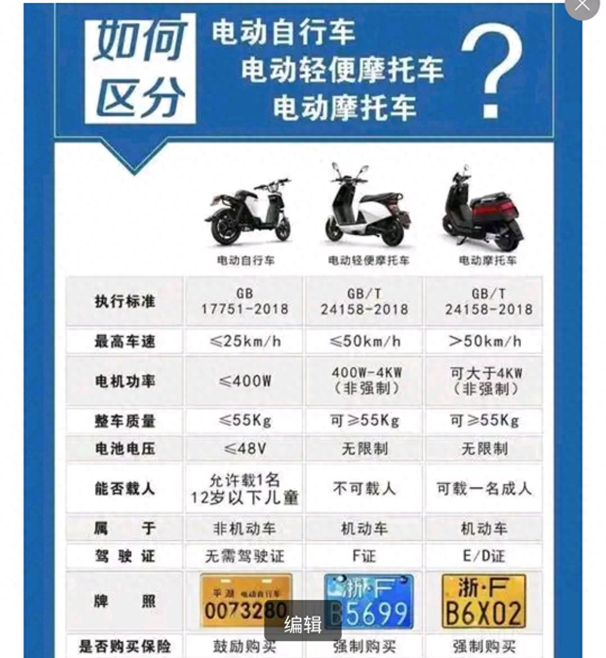 2019年电动车国标出台,将电动车分为三类,48V属于电动自行车;不需要驾驶证,可以合法载一名12周岁以下儿童。60V属于电动轻便摩托车,需要上摩托车蓝牌,还要考摩托车F证中才能合法驾驶;72V属于电动摩托车,需要上摩托车黄牌,要考摩托车E证或D证才能合法驾驶,同时这两种车型都属于机动车,还要为车辆购买保险。