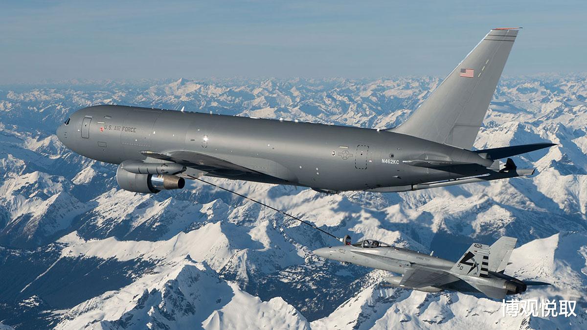 F18“超级大黄蜂”作为海军舰载机主力,通过软管加油模式与KC46无缝衔接,提升航母打击群的远海作战半径。