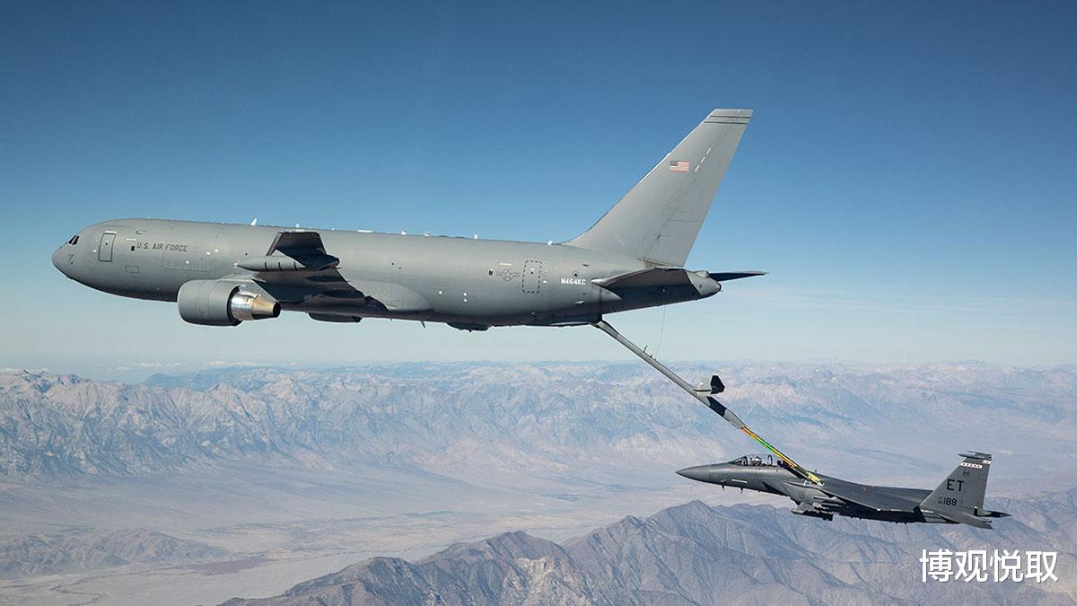 值得一提的是,KC46还具备“自加油”能力——通过硬管系统为同型机补充燃油,这一设计在远程转场或前沿部署中可显著提升机队的灵活性。