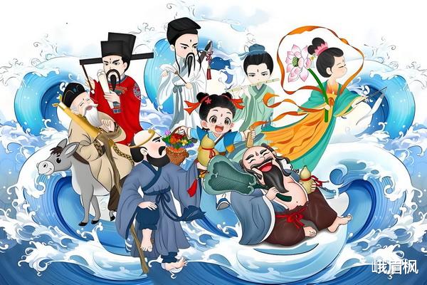 八人凭借浮木、葫芦等工具漂流至蓬莱,被渔民视为“神人”,后经民间神化演变为“八仙”。