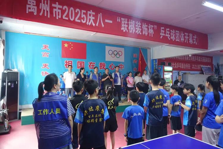 7月27日上午,禹州市2025庆八一“联梆装饰杯”乒乓球团体赛在禹州市大众乒乓球俱乐部隆重举办,来自全市的乒乓球选手及来