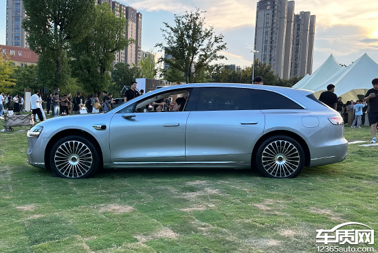 车身侧面是新车的一大亮点,采用了短前悬、长轴距的设计,既保证了车内充裕的乘坐空间,又优化了整车比例。B柱之后,车顶线条平缓下滑,勾勒出优雅的溜背式造型,成功规避了传统旅行车的臃肿感,也造就了0.23Cd的极致风阻系数。
