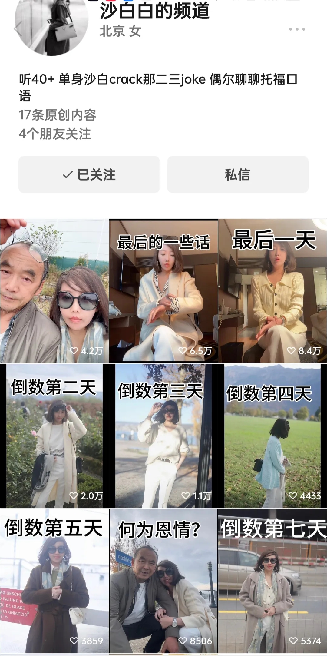 此前她在社交平台上记录自己生命倒计时的视频,曾引起了广泛的关注和讨论。