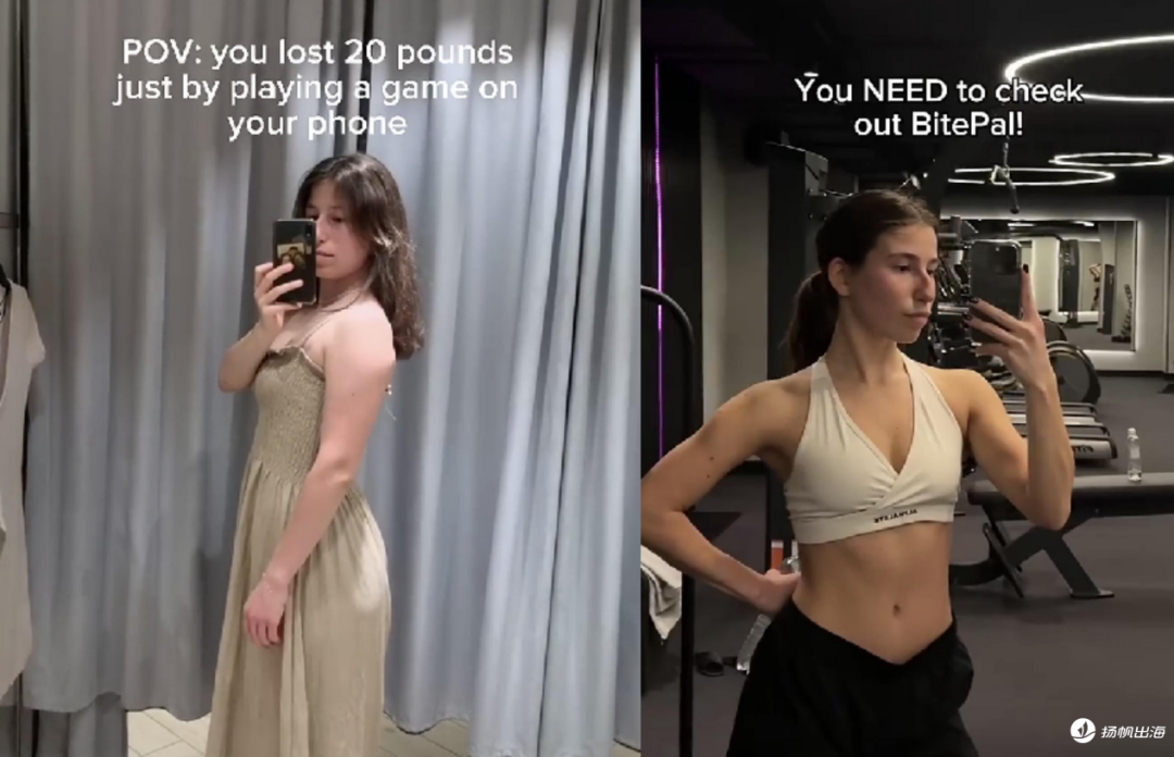 另外,BitePal的广告素材并未局限于常规的功能罗列,而是通过高度真实的用户场景内容触达目标群体。例如,素材中大量采用“减肥挑战记录”“前后对比变化”等真人实拍素材,展示用户坚持使用BitePal一段时间后,体态轮廓的改善,或是日常饮食从高热量到健康搭配的转变过程。这些内容不仅以直观的视觉对比强化了“效果可见”的可信度,更通过真实用户的亲身经历,传递出“普通人也能轻松坚持健康饮食”的共鸣感。
