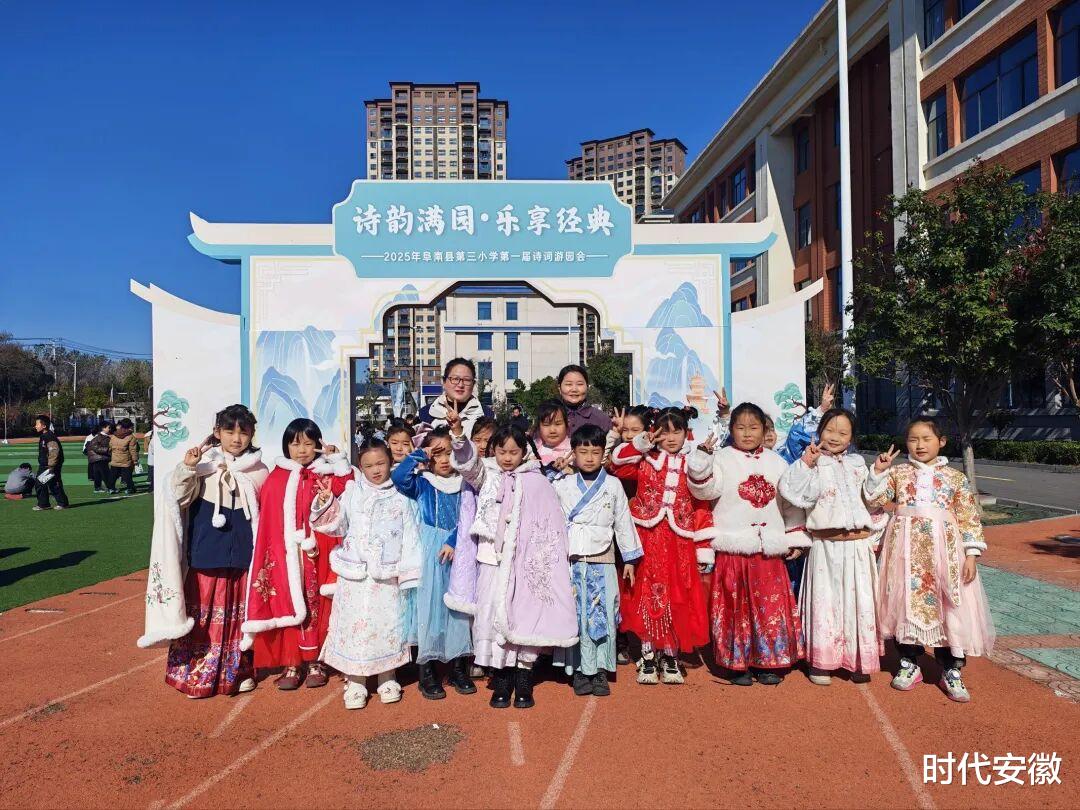 古韵悠悠浸润童心,童声朗朗传唱经典。融融暖阳下,诗情随风扬。为进一步增强中华优秀传统文化的影响力与感召力,弘扬经典诗词之美,让传统文化滋养少年儿童的精神世界,培养其健康审美情趣、塑造健全人格,促进全面和谐发展,阜南三小举办了一场别开生面的文化盛宴——2025年第一届诗词游园会。同学们身着精美的的汉服,佩戴着古韵的装饰,在沉浸式体验中邂逅诗词之美。