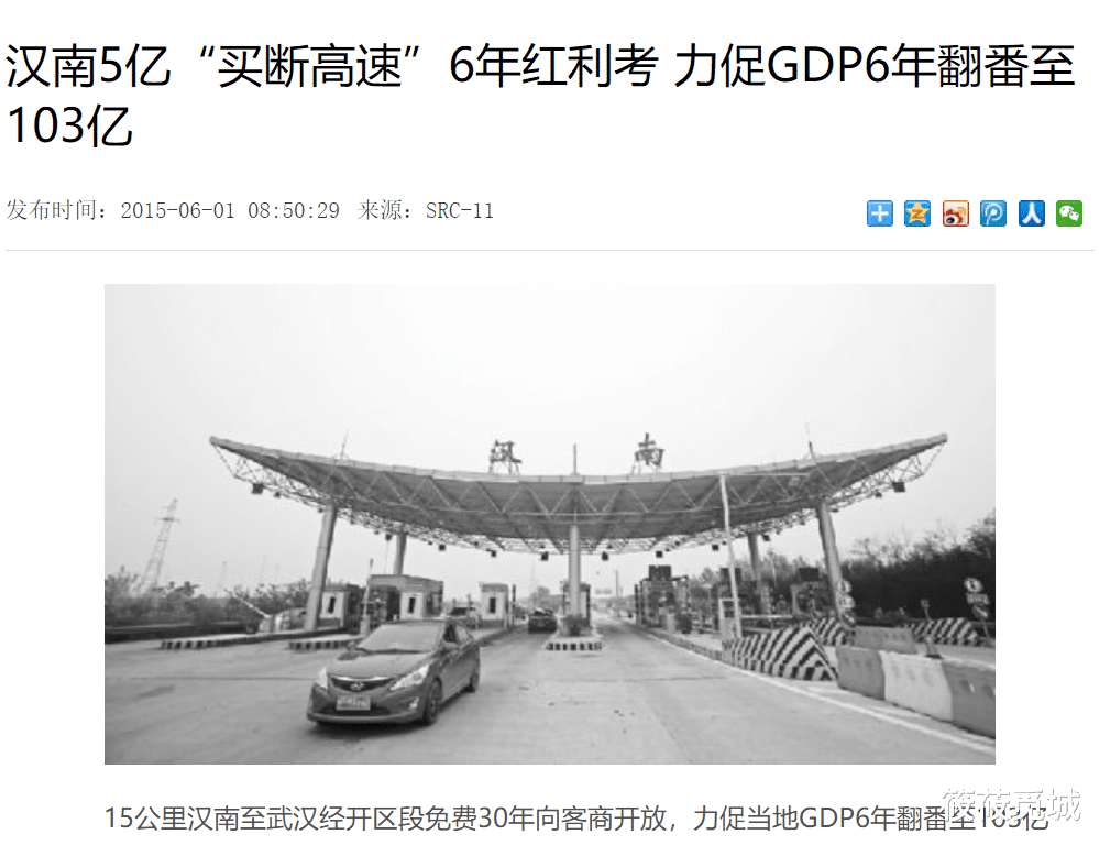 在2009年,汉南一鼓作气,花大价钱买断了汉洪高速剩下收费年限的经营权,实行点对点免费政策,成为了第一个吃螃蟹的人。