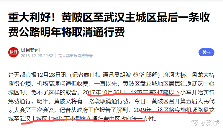 而我们都知道武汉市在上世纪90年代将下辖的4个郊县全部变成了下辖区,在2000年后,武汉几个郊区都如雨后春笋般快速发展,但是一条横杠在郊区与市区的收费高速,就成为了阻碍发展的拦路虎。