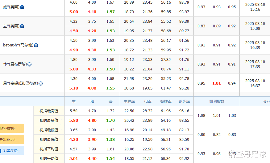技术分析:指数上,威先立后。先开的威给出了441组合,中庸微高的大冷主胜和次冷平局,以及微高均值的低赔客胜。威初盘并不蹊跷,不能有所判断;立随后提0双降31,不同变化后,主胜仍然是大冷方,稍降后稍低均值明显,且应用了特殊指数4.33,这带给了本场比赛的分析切入点和判断点。同时冷平稍降后同样稍低均值明显,低赔客胜微降后中庸完全同均值,这并不蹊跷,冷平和低赔客胜都并不蹊跷,理论上判断第2类阻买分筹也是合理的,但是不合理的地方在于立随盘最不热的大冷主胜从先开的威大冷主胜中庸均值稍降后稍低均值且更为重要的是,特殊指数稍低均值,同时10同降不得不结合本身本场比赛筹码对于客队不败的整体看好,因而解释成最不热的大冷主胜降赔,同时10整体结合筹码本身看好而整体降低引筹,保护最不热的大冷主胜,大冷主胜本身降赔降低真正打出后的赔付的解释同样合理,也因为特殊指数的应用,从而对于后者的解释更为看好,也因此做出了单大冷主胜的判断,而且是直接的判断,没有排除哪个结果随后权衡剩余结果的判断过程,这是1场直接判断单大冷主胜结果的比赛,是1场特殊指数导致单大冷判断的比赛,属于欧赔分析思维介于入门和高阶之间的思维之1,需要1定分析阅历和细微判断的能力,供参考。