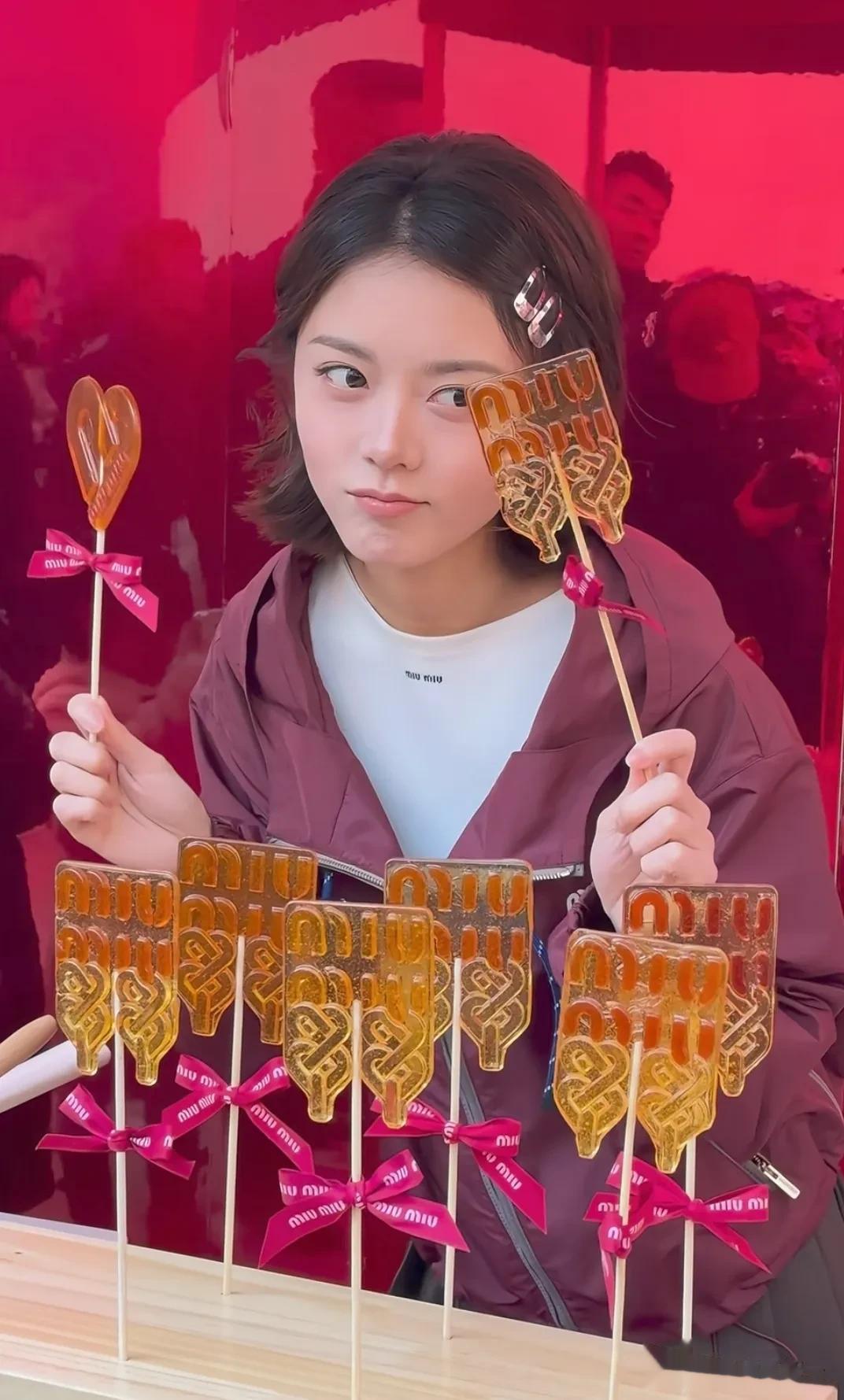 赵今麦更是脸蛋都能掐出水了,拿着糖画拍照的她表情娇俏可爱的不行了。