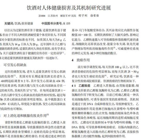 参考资料:[1]胡宁利.饮酒对人体健康损害及其机制研究进展[J].人民军医,2007