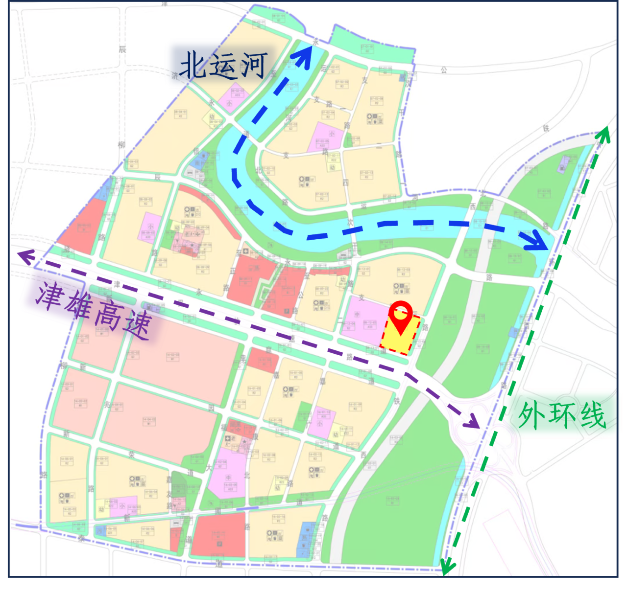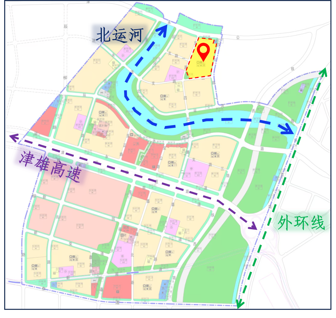 北仓示范镇位于北运河与津永路交口东南侧、津雄高速两侧,地处京津冀协同发展重要节点,区位优势明显。