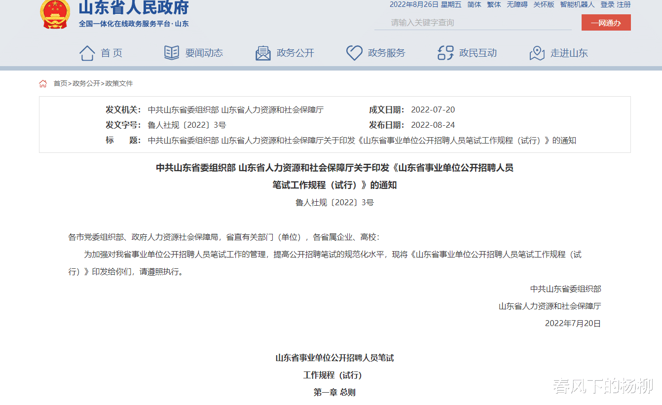 2022年8月24日,山东省人民政府发布了《山东省事业单位公开招聘人员笔试工作规程(试行)》,规程就明确规定命题组人员严禁参与任何形式的考试培训辅导。原话是这么说的“命题小组人员应当严格遵守保密要求,严禁参与任何形式的考试培训辅导活动,严禁泄露与试题命制工作有关的任何信息”。