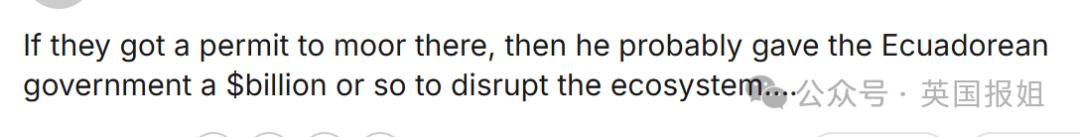 “如果他们在那里获得了停泊许可,那估计是提前给了给了厄瓜多尔政府一笔巨款,来允许他们破坏那里的生态系统……”