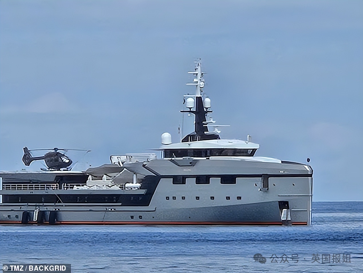 (游艇还设有直升机停机坪和价值1亿美元的支援船)
