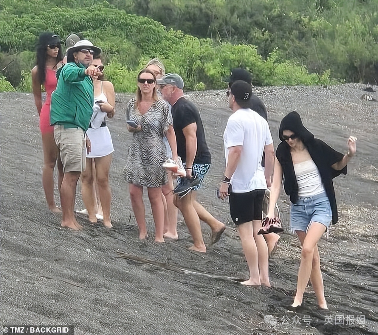 两人和一群朋友一起登上岛屿,声势浩大。