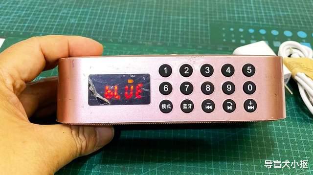 翻转机身到中框与后盖,它的厚度很感人,可以容纳更多的布局。像中框顶部,分成左右的屏幕区、按键操作区。屏幕有亚克力背板防护,下面显示了方形的小屏幕,黑色底色,红色字符,字号不大。在连接蓝牙、播放歌曲、播放收音机电台时,m907的屏幕会对应显示播放的状态、曲目数和时长,滚动显示,很精确。屏幕同时起到电量提示的作用,便于随时补充电能。在屏幕右边是m907的按键区,它设计了0-9数字键,上下曲切换和播放暂停键,菜单和设置键单列,操作更完善。