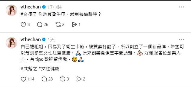 陈思圻并没有去享受豪门阔太的清闲生活,而是胆粗粗地跨界转战商界,悄悄转型成为了一名女性健康用品企业家。这次她创立的并非高端美妆,而是极为接地气的卫生巾品牌。