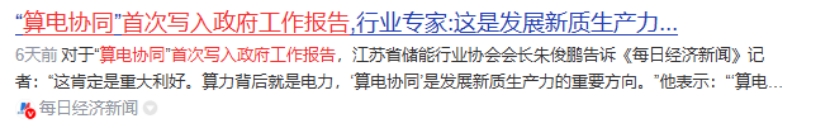 算电协同首次被写入政府工作报告,列为国家级新基建工程,标志着其战略高度实现了从技术探索到国家顶层设计的跃升。