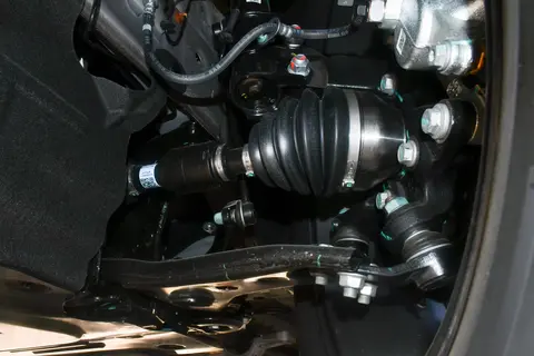 车身采用笼式结构设计,高强度钢占比超过 80%。这种车身结构不仅能在碰撞时提供足够的安全保护,在越野时也能保证车身刚性。经过连续颠簸路段时,车内异响控制得很好,能看出来车身装配工艺很扎实。