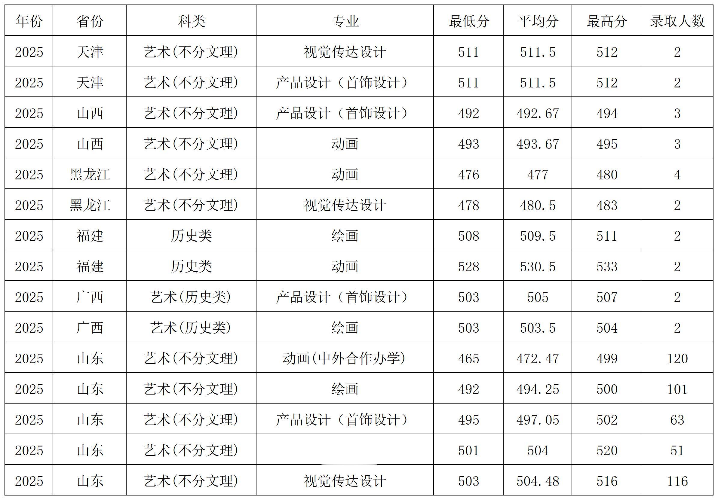 青岛农业大学2025年艺术类在各省各专业录取分数线
