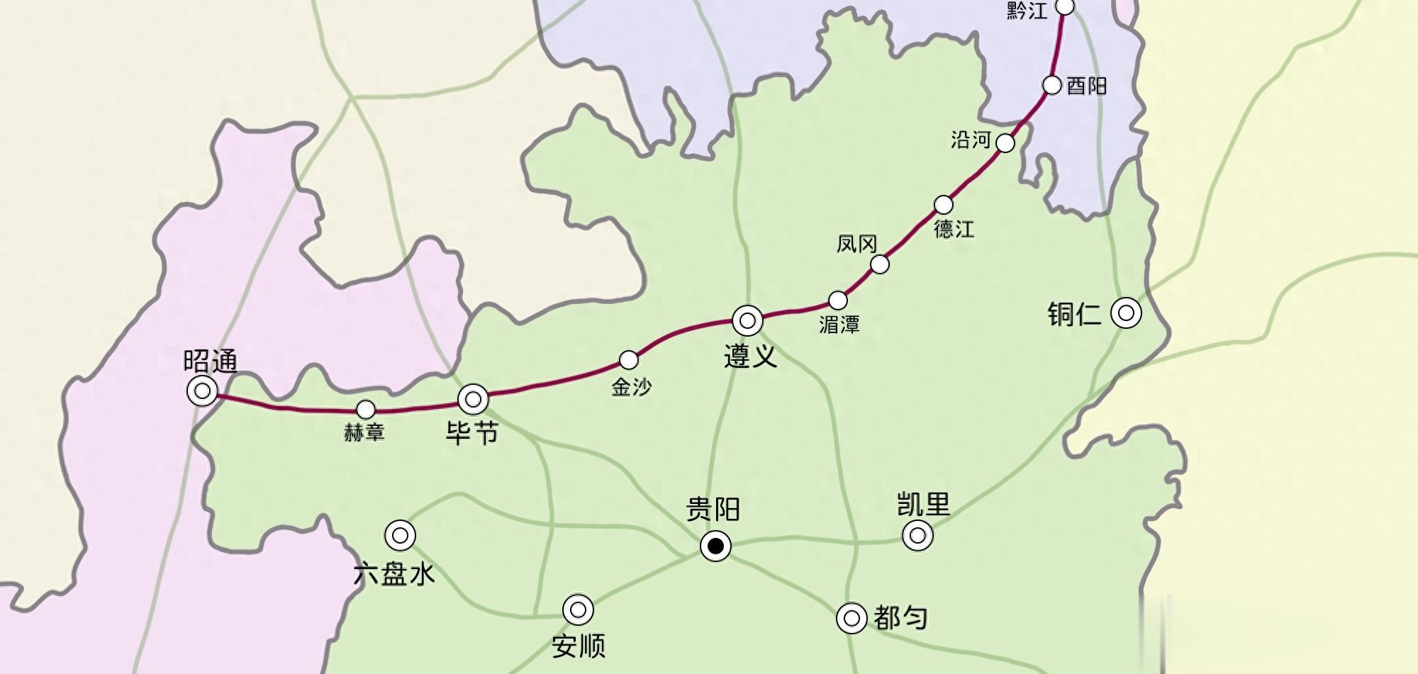 然而,时过境迁,一切都变了。首先,高铁时代到来,昭黔铁路的客运价值大大减少。试想一下,就算昭黔铁路通了,现在还有多少人愿意在遵义、贵阳乘坐老火车北上湖北、河南、北京等地呢?加上重庆到郑州的高铁已经开通了,未来贵州北上中原的线路要么是京广高铁,要么是郑万高铁。第二,乌江航运的开通,很大程度会取代乌江沿岸的货运。从贵阳到达长江的磷矿等物资完全可以走水运到达涪陵港,运输成本更低。第三,贵州未来的货运以南北走向为主,主要是四川盆地南下北部湾和珠三角的出海通道,而东西走向的基本依靠沪昆铁路就可以,所以对昭黔铁路的需求是非常小的。