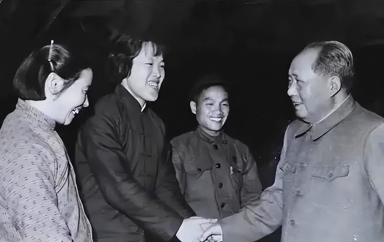 毛主席走到她面前,握着她的手问:"叫什么名字?从哪里来的?干什么工作?"尉凤英一一回答,这是第一次握手。