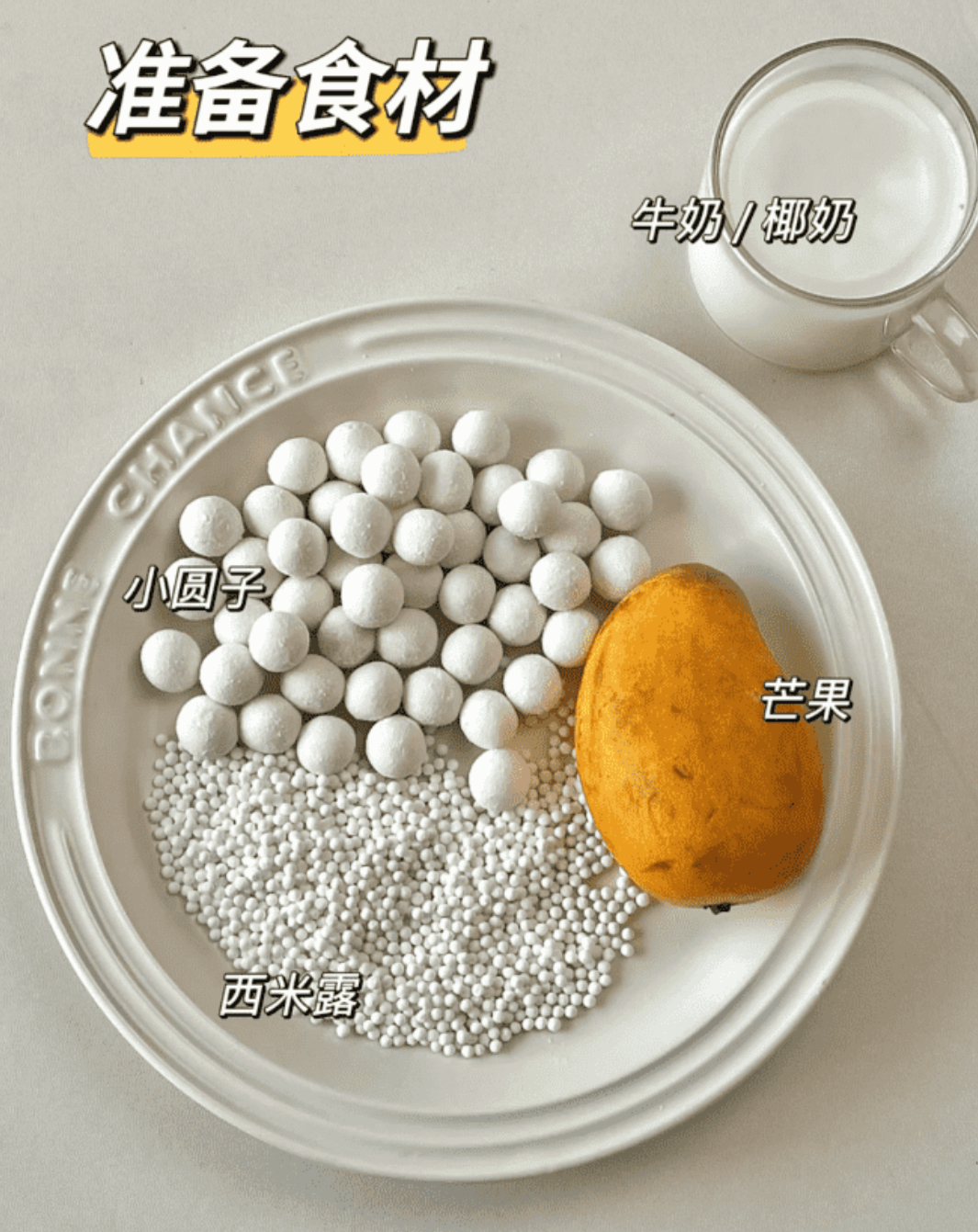 先给食材们来个自我介绍:主角芒果要选“软熟型选手”,捏起来带点弹性、果香浓郁的那种(如果买到偏硬的青芒,丢进米缸捂两天就能变身甜糯担当);西米记得挑小颗粒的,煮起来省时还容易Q弹;小圆子直接买现成的冷冻款就行,省得揉面揉到怀疑人生;牛奶和椰奶是灵魂汤底,纯牛奶温柔,椰奶自带热带风情,按喜好二选一或混搭都很可!