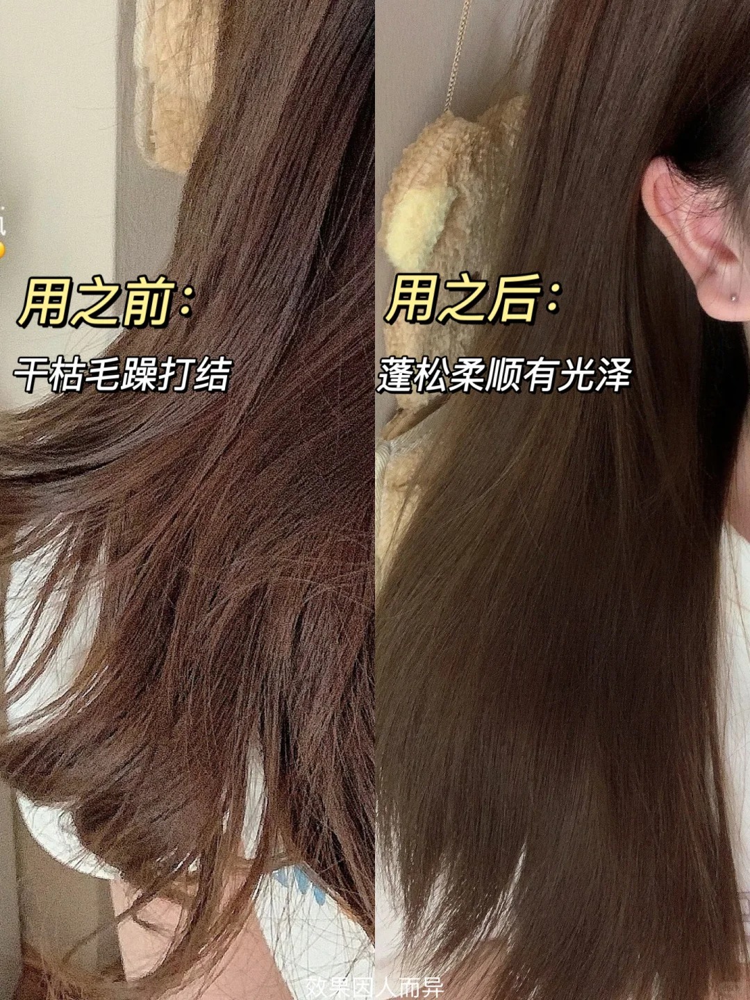 它的使用感受——剪完层次长发后天天打结,试了它湿发按摩三分钟,梳子终于能从发根一路滑到发尾,没卡顿;但三天不用,发尾又返璞归真,干得像方便面卷;后来翻了说明书才懂,它靠双层酯类包裹缓慢释放,润得慢也散得慢,所以别指望一次管一周。