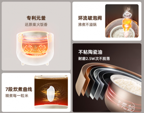 材质与控温技术兼顾口感与耐用性,采用陶瓷油元釜内胆,涂层不粘易清洗,煮米饭、煮粥后内胆一擦即净,不用费力刷洗;经过25000次6层耐磨测试,长期使用也不会出现涂层脱落问题。NTC双感温探头精准控温,实时调节烹饪温度与水分,确保米饭受热均匀,煮出的米饭松软细腻、香气浓郁,避免夹生或糊底。